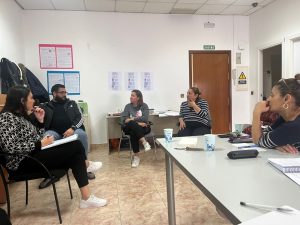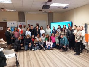 Otra de las líneas de actuación del proyecto es el acompañamiento a las mediadoras interculturales de la Red Artemisa. Hemos realizado varios encuentros en los que recogimos información preguntando a las mediadoras interculturales que trabajan en centros educativos, cómo se encuentra la mediación en los centros educativos. Nos expusieron cómo ayuda la mediación a la mejora de comunicación y la convivencia tanto en familias del centro educativo, como en sus alumnos y alumnas y en los profesionales que trabajan en los centros. También hemos enfocado varias de esas reuniones a buscar nuevas herramientas y sistemas de trabajo que ayuden a las mediadoras a una mejor cooperación y comunicación en los centros educativos. No sólo creamos herramientas para las mediadoras , sino que también creamos unas nuevas dinámicas y herramientas de trabajo que se puedan realizar en las aulas con los alumnos y alumnas como es (el maletín de mediación) en las que se trabaja la mediación con los alumnos y alumnas de una manera lúdica y divertida.