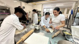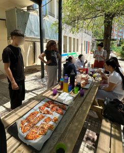 Después, nos pusimos manos a la obra para hacer pizzas todos juntos. No solo disfrutamos comiendo algo casero y delicioso, sino que también nos enseñó mucho sobre trabajo en equipo. Elegir los ingredientes y repartir las tareas nos ayudó a escuchar, respetar y valorar las opiniones de todos y todas. Por último, salimos al jardín a disfrutar de la comida con los profesores y profesoras mientras contaban algunas anécdotas.
