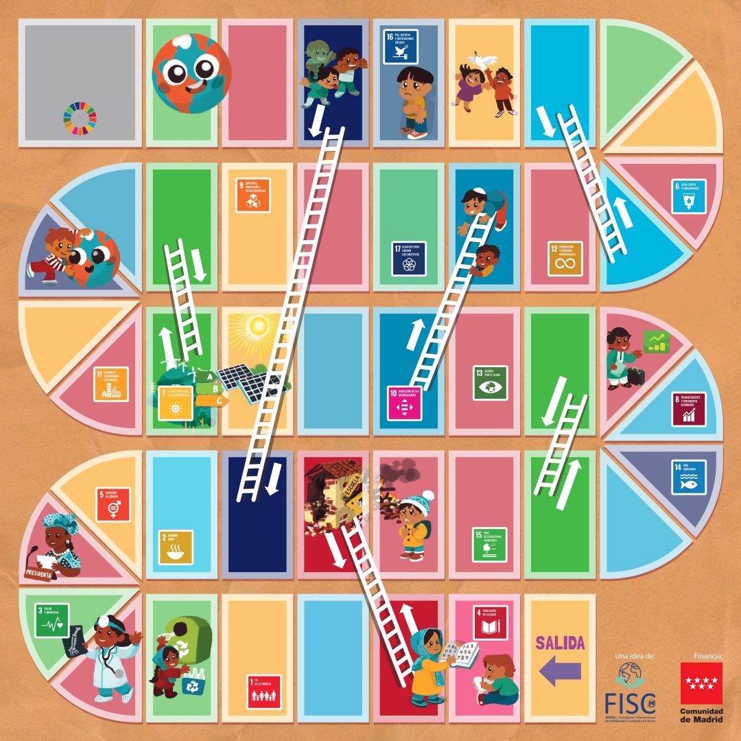 Desde el área de Educación Transformadora para la Ciudadanía Global, trabajamos en procesos educativos con el fin de que el alumnado y profesorado conozcan las desigualdades entre el Norte y Sur Global y los retos que tenemos como sociedad en la construcción de un mundo más justo, equitativo y sostenible para 2030. Un buen ejemplo de este trabajo es el proyecto: «Construyendo ciudadanía global sin dejar a nadie atrás» financiado por la Comunidad de Madrid, donde trabajamos desde Educación Infantil y primer ciclo de Educación Primaria en la difusión de los ODS, como herramienta de cambio y conocimiento sobre los problemas globales con el fin de actuar localmente. A través de juegos didácticos, como este juego de la escalera, puzzles o memory que podéis encontar aquí.