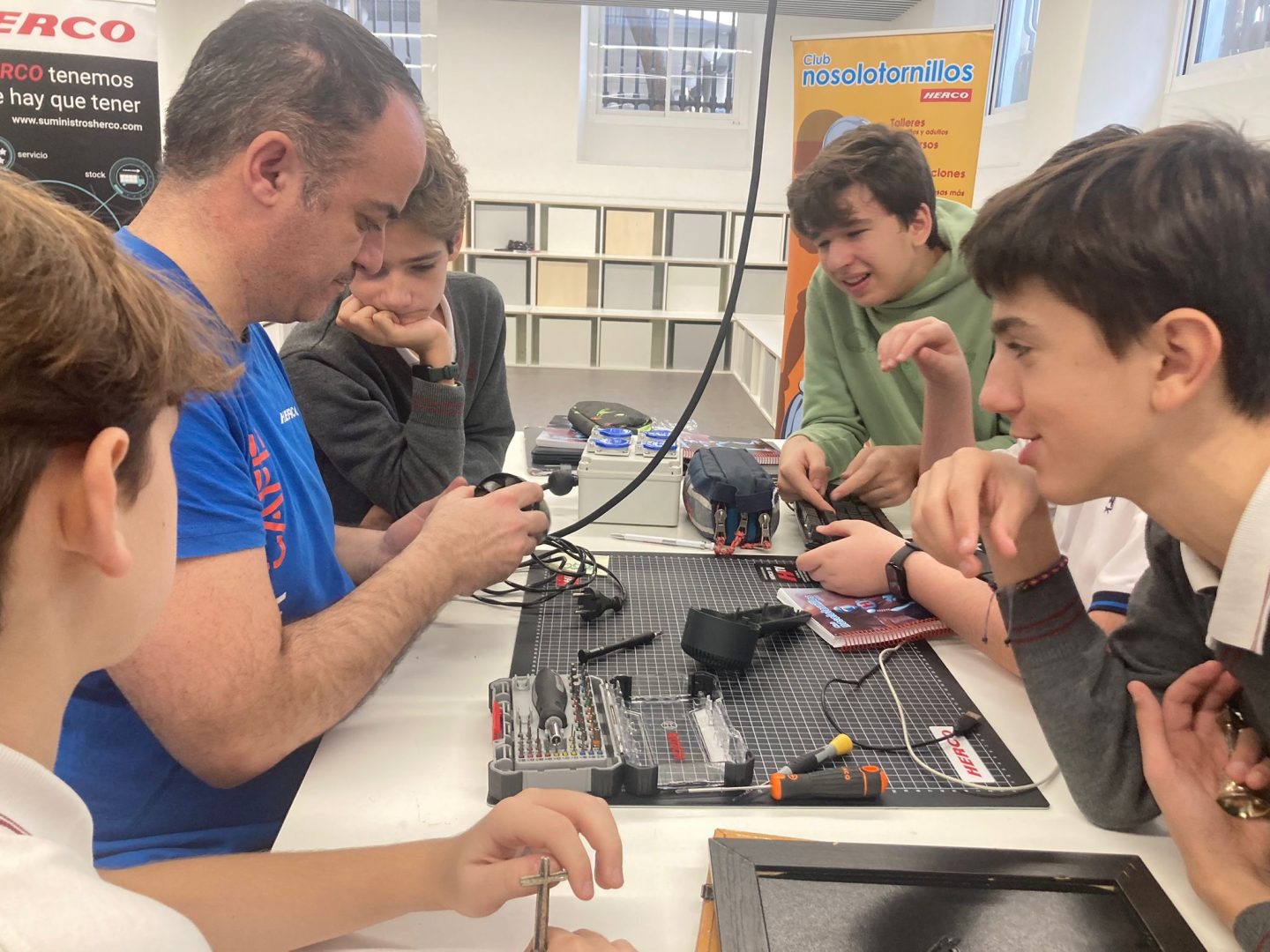 El martes 26 y miércoles 27 se realizaron 2 Café Repair en las instalaciones del colegio. El martes, en horario lectivo, el alumnado de Horizontes de Secundaria trajeron diferentes objetos para ser arreglados gracias a Herco y los reparadores, ejerciendo su derecho a reparar. Es un  taller increíble sobre reutilización y reparación de objetos cotidianos para darles una segunda vida, sin necesidad de consumir y comprar de nuevo. El miércoles 27 por la tarde, diferentes personas se acercaron y se pudieron arreglar algunos juguetes, una plancha de cocina y un radiador.