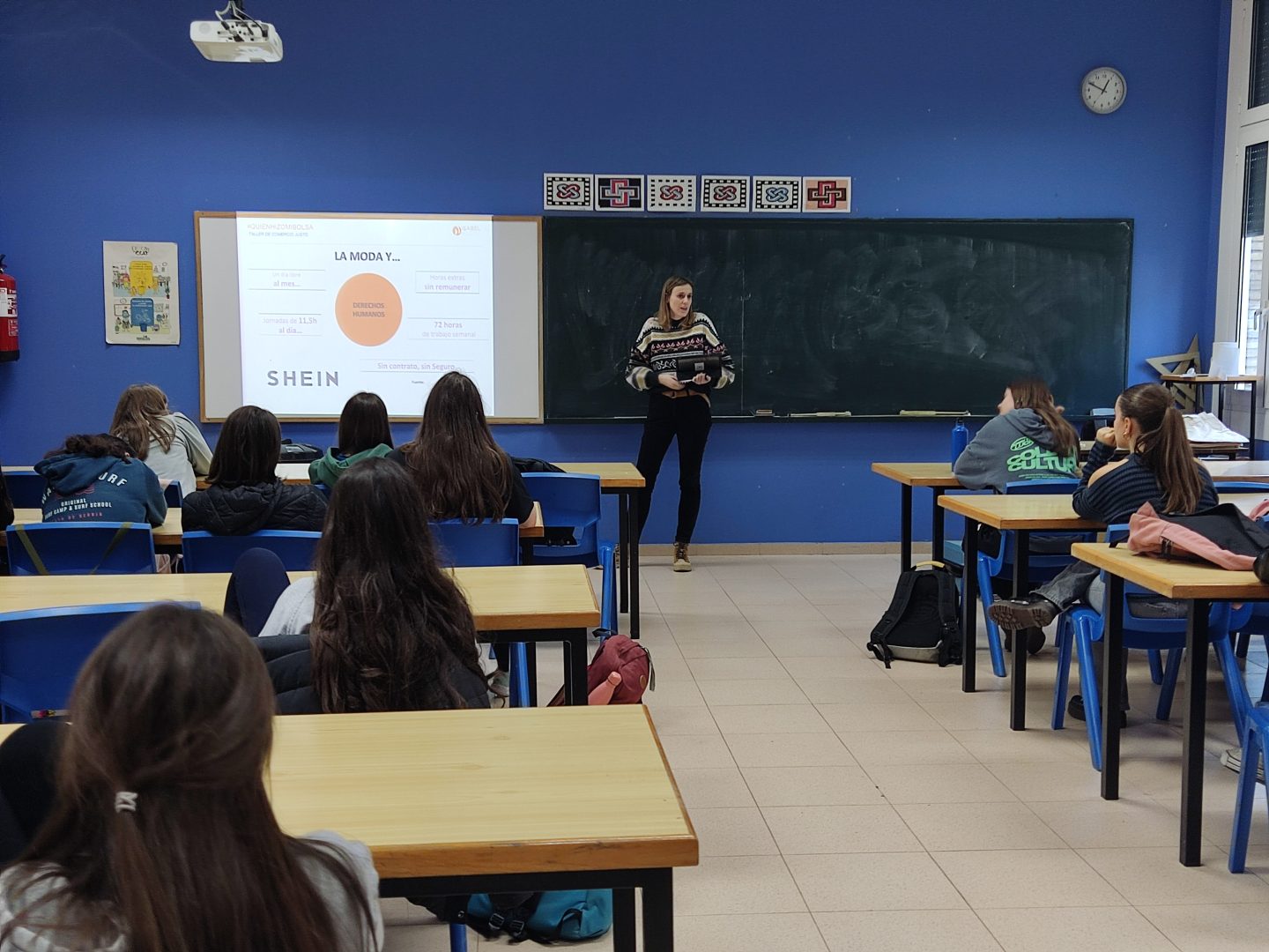 El viernes 22 pudimos contar con la Fundación Isabel Martín para impartir 2 talleres en el Colegio Compañía de María de Zaragoza. Pudimos aprender la importancia de no dejarnos llevar por las modas, ser conscientes en nuestras compras, especialmente en el mundo del textil y el calzado y mirar las etiquetas. La alternativa es clara: comprar comercio justo, ¿qué cambia? Todo. Comprando comercio justo sabemos que pagamos un precio justo que llega al productor local, sabemos que apostamos por los Derechos laborales de las personas trabajadoras y que cuidamos el planeta. Para finalizar, las personas asistentes pudieron pintar una bolsa de comercio justo y algodón orgánico de la Fundación y llevársela a casa.