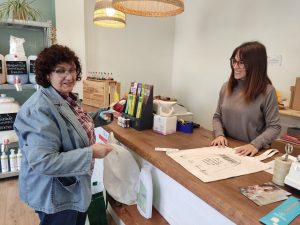 También en Segovia se realizó un CashMob en Mayo. Se contactó con tiendas de comercio local y sostenible y cada persona que consumió responsablemente en una de estas tiendas el 5 de mayo, se llevó una bolsa de tela y un marca-páginas de semillas.