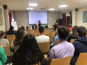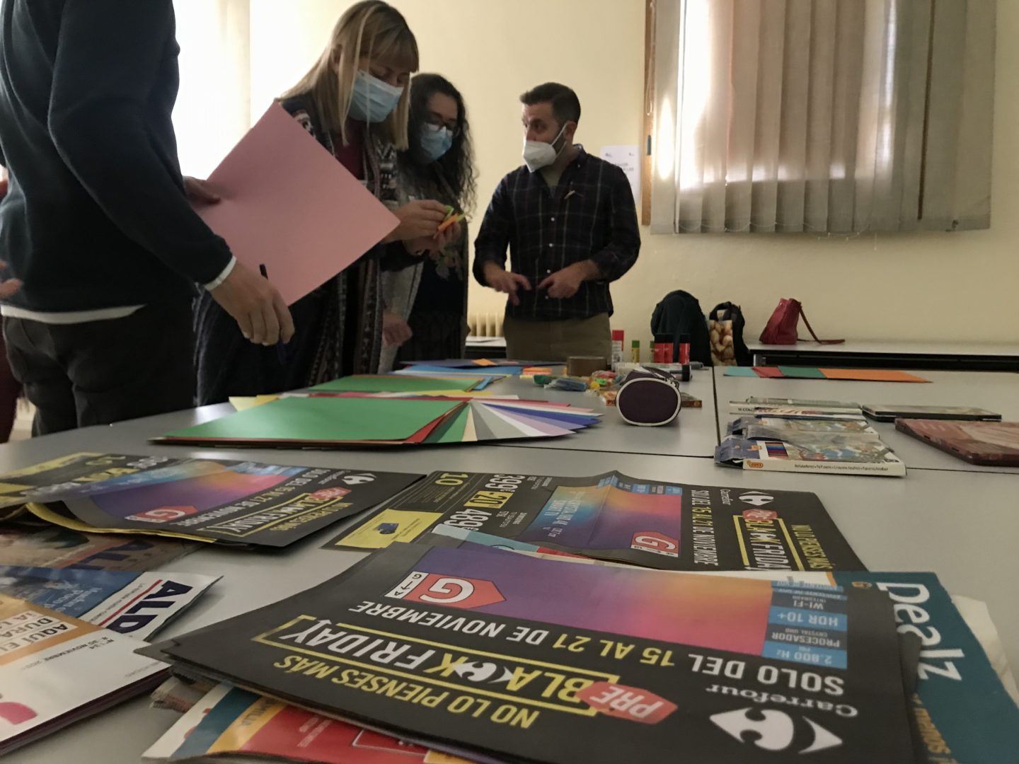 Empezamos por el Colegio Mayor Monferrant en Valladolid, donde Lucila, mi compañera y Técnica de Educación para el Desarrollo de FISC, habló de publicidad y género, de consumo y producción y propuso a las alumnas realizar una contra-publicidad.
