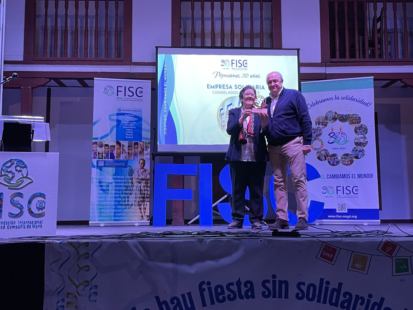 Empresa solidaria: Congelados Bermúdez destacó por su apoyo inquebrantable. Macamen Sánchez, delegada de FISC Galicia, aceptó el galardón en nombre de la familia.