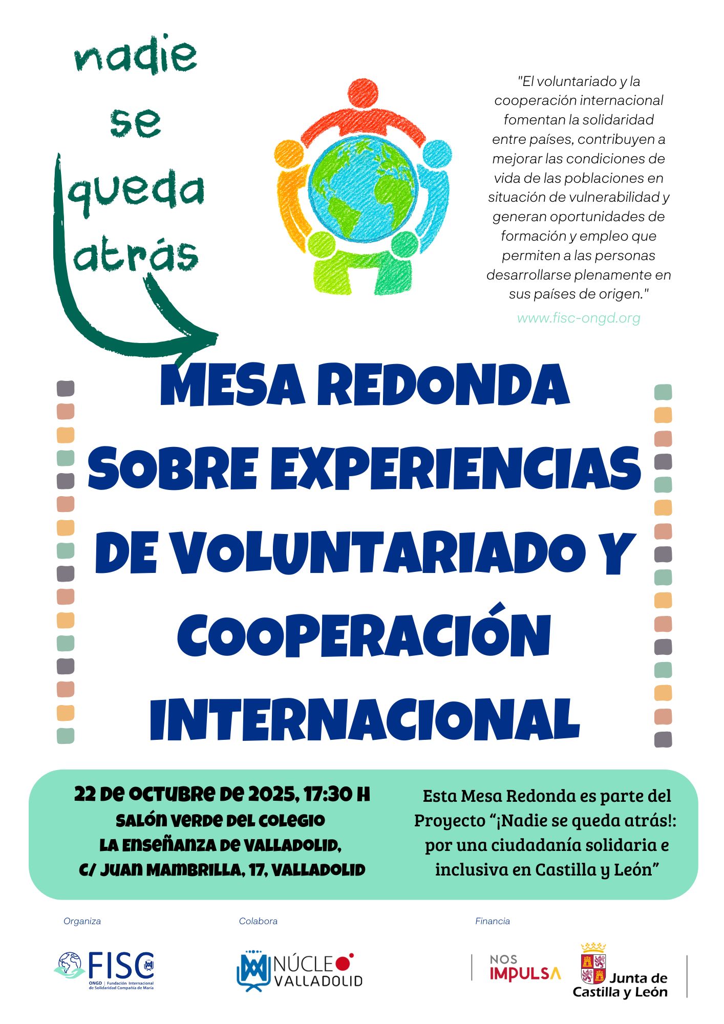 Durante los días 14 y 15 de octubre de 2025, FISC ha llevado a cabo en el Colegio La Enseñanza de la Compañía de María en Valladolid unos interesantísimos talleres de sensibilización sobre la temática de la migración. Estos talleres se enmarcan en el proyecto titulado “¡Valladolid SOLIDARIA!: por una ciudadanía más sensible e inclusiva”, el cual ha sido financiado por el Ayuntamiento de Valladolid en su convocatoria de 2025.