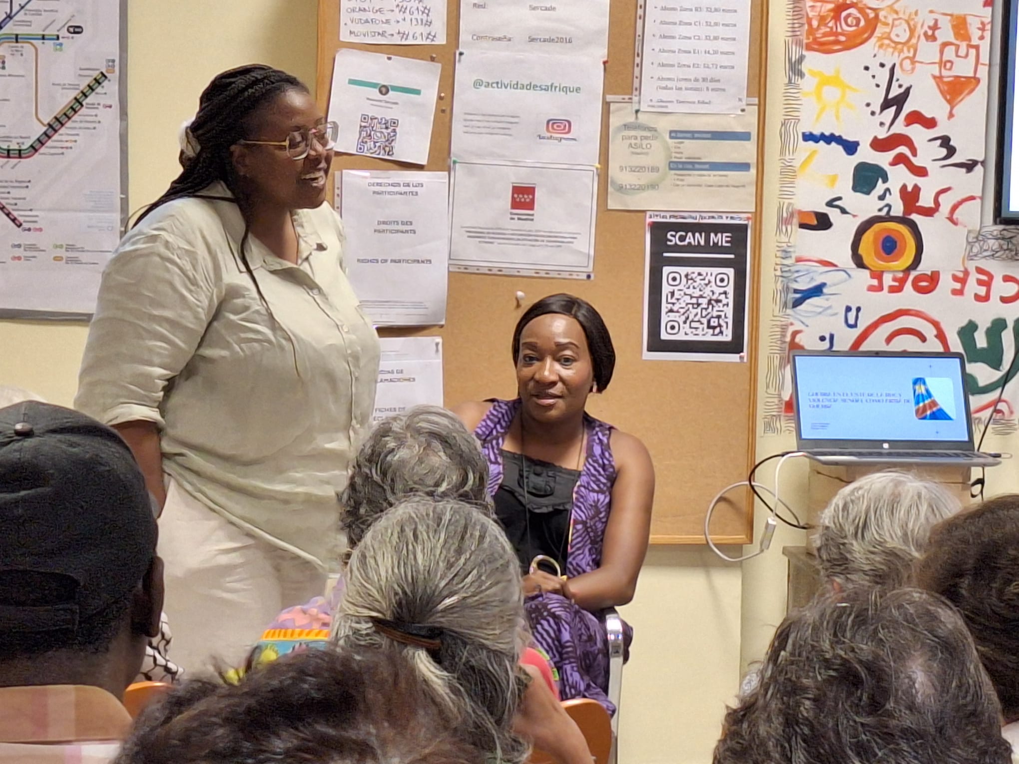 Nicole Ndongala y  Teffia Mujjima, ambas de la Plataforma de Mujeres Congoleñas,  nos hablaron de los intereses económicas que sostienen una guerra que aunque se pretende calificar de doméstica, beneficia directamente a los intereses de grandes multinacionales, empresas y estados a los que la desestabilización de la zona y de la RD del  Congo en general, beneficia para obtener materias primas, tierras raras etc, en condiciones inmejorables.
